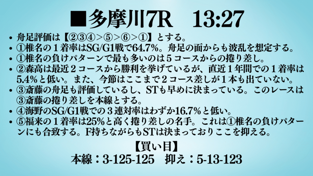 多摩川7R 13:27