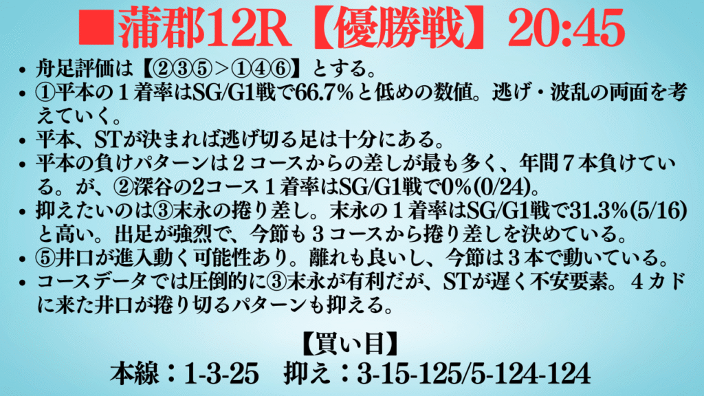 蒲郡12R【優勝戦】 20:45