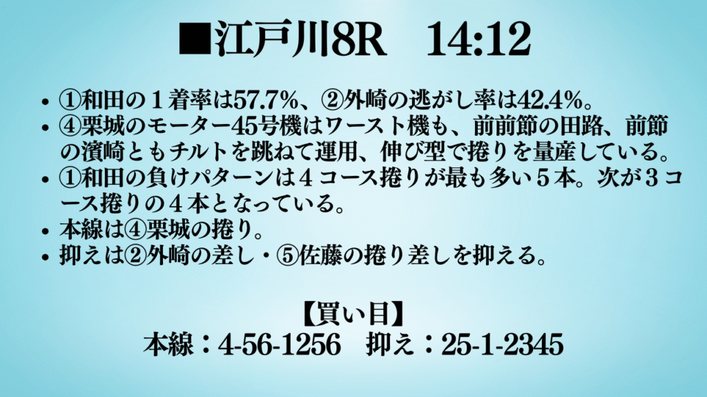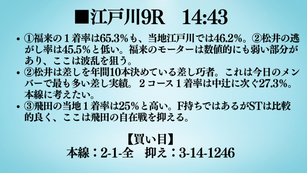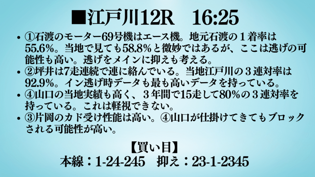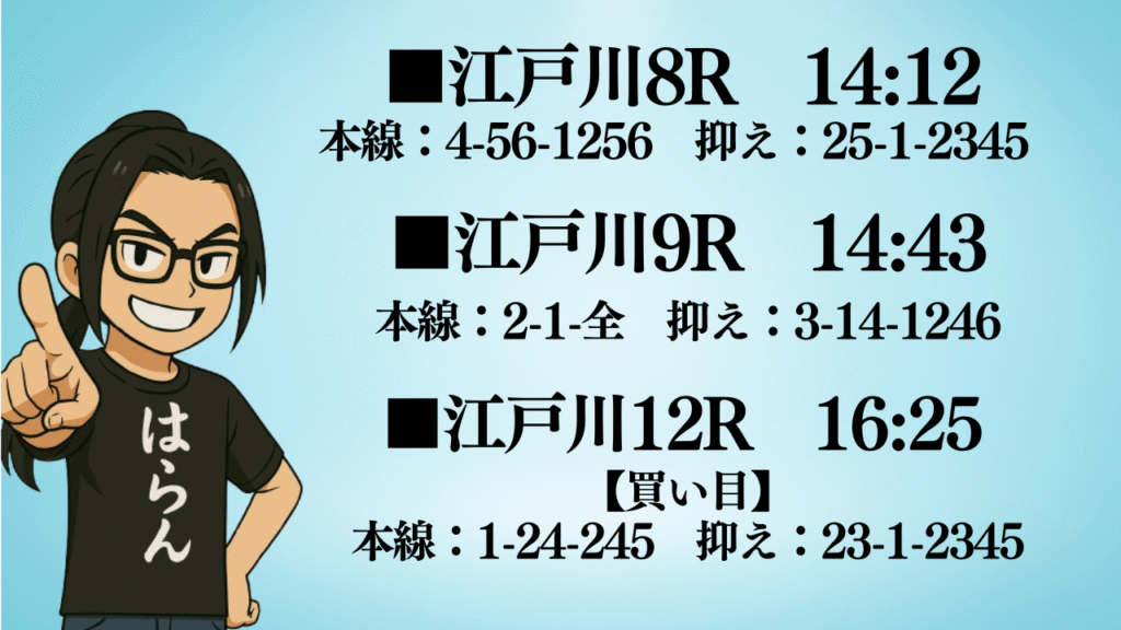 おはようございます。ミナトです。今回は、今日から始まる江戸川G2から3本予想しました。ぜひ最後までご覧ください。