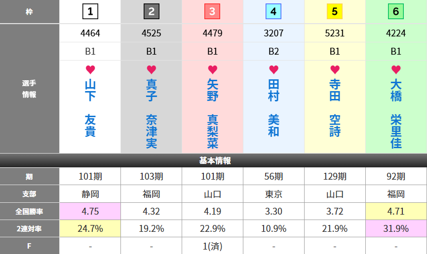 会員登録すると、モーター評価値やメモ・選手メモを残せるようになります。