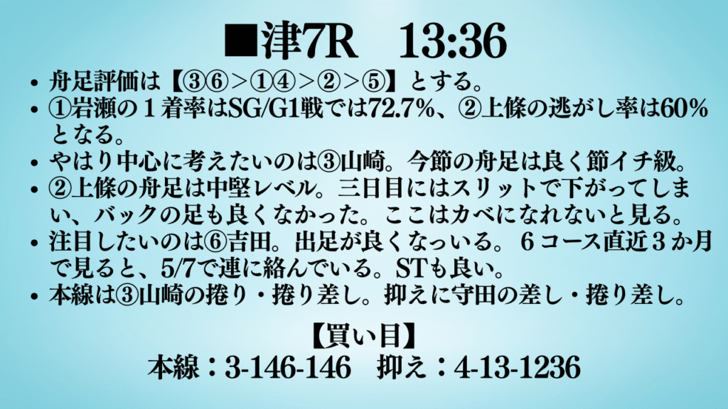 やはり山崎の舟足が良い。今回も狙っていきます。