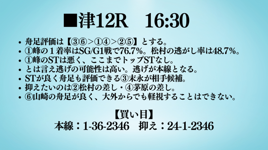 今節の峰の足は上位級で、しっかりとST踏み込むことが出来れば先マイからの逃げ。