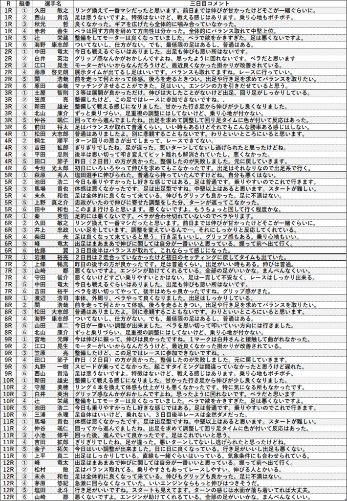 まずは三日目を終えた選手のコメント一覧がこちらになります。