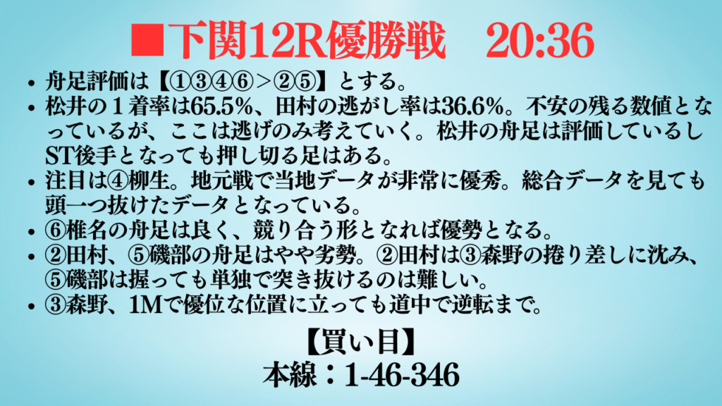 今節の松井の舟足は良いし、多少後手のSTとなっても伸び返して先マイ。