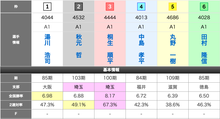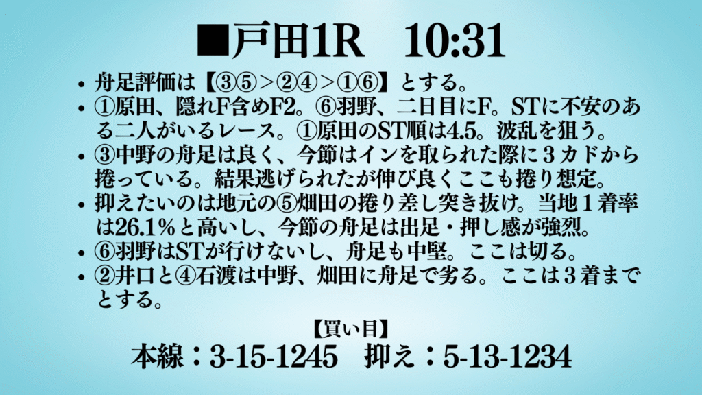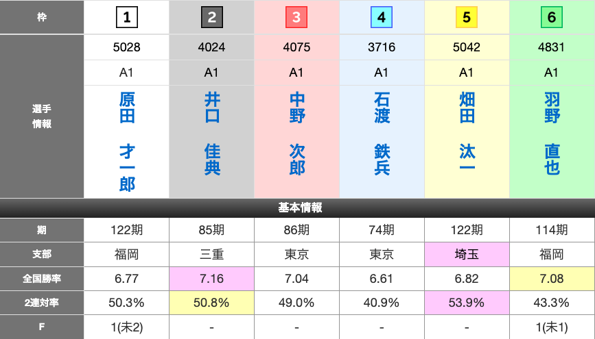 インの原田が隠れ含めF2。今節のSTはやはり後手を踏むことが多く、ここも遅れる想定。