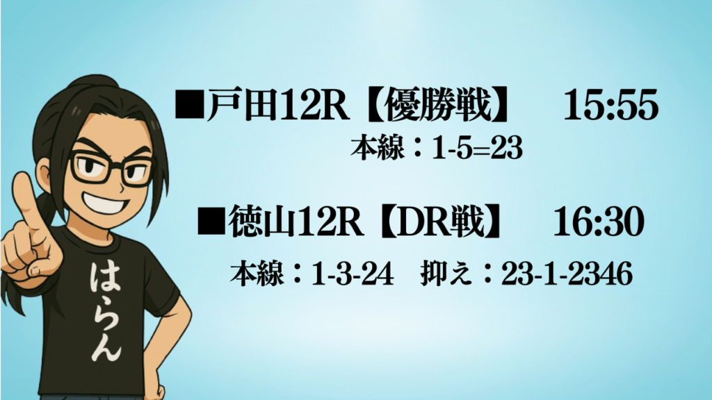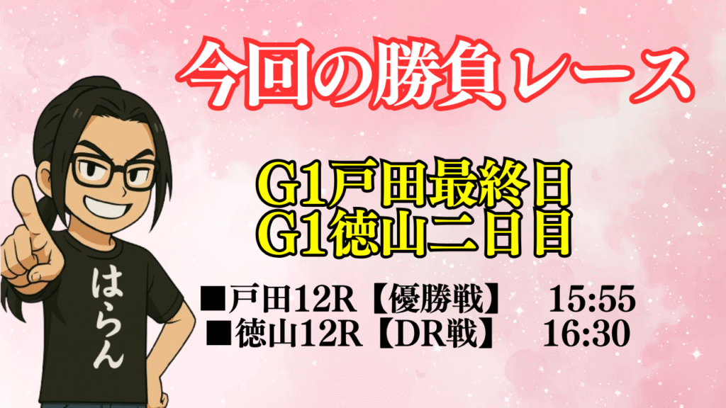 本日はG1戸田の優勝戦、そして徳山の二日目となっております。
