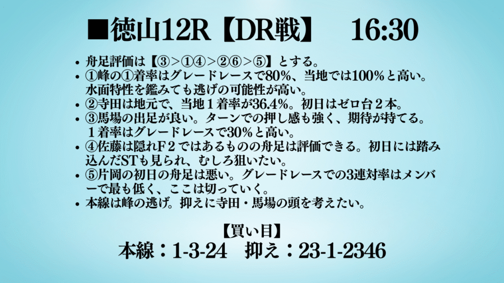 徳山ということでより一層逃げが堅いレースではあるが、この二人の頭は狙いたい。