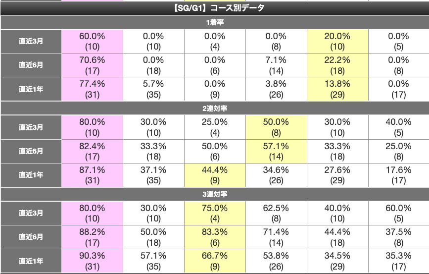 峰のコース実績も良いのですが、それ以上に宮地の逃がし率が高い。