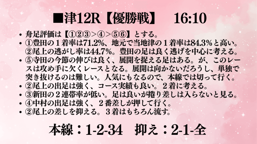豊田の舟足は文句ない仕上がりだし、当地データも超優秀。
