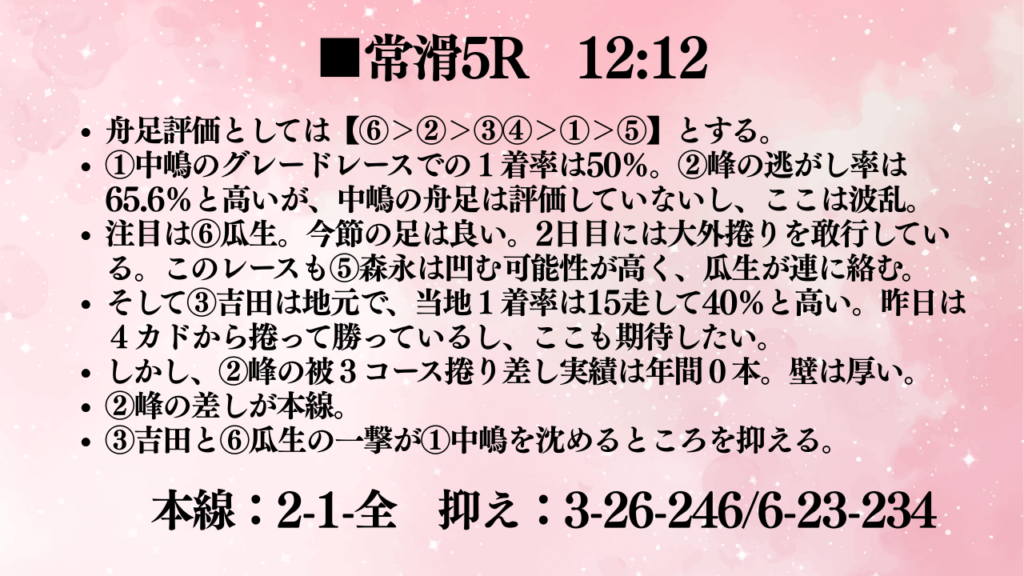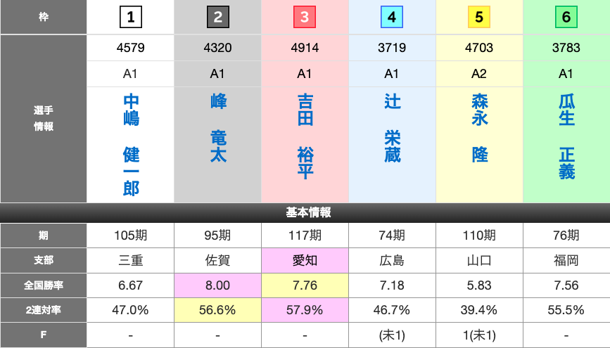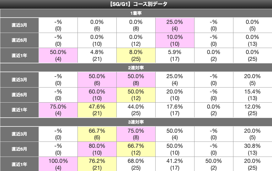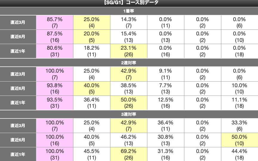 ③吉田の捲り差しを本線としたいところだが、②峰の被3コース捲り差し実績は年間0本。