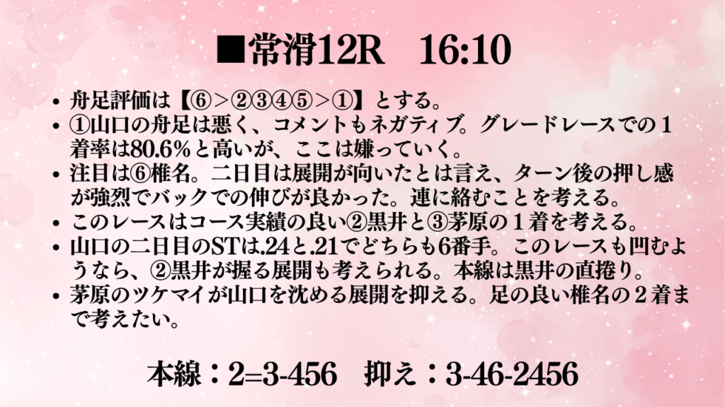 今節の舟足は悪く、グレードレースでの実績も悪い。