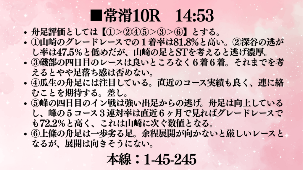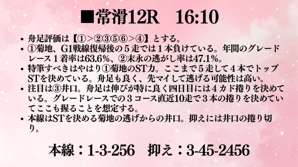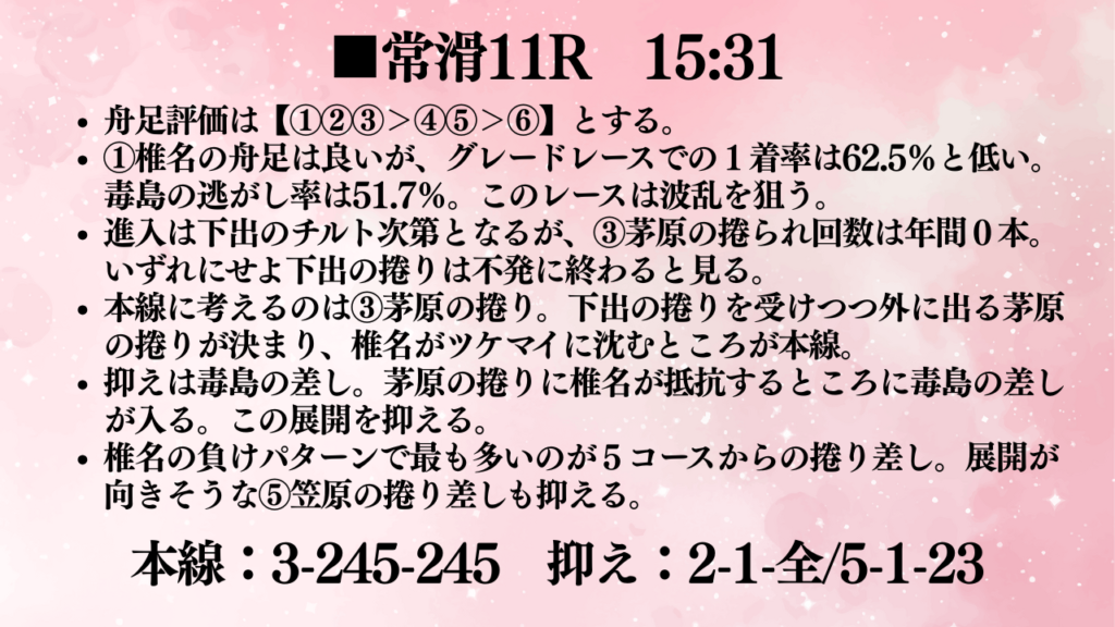 今回は準優3つを予想しました。