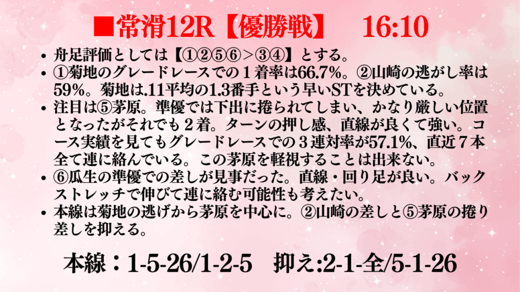 常滑G1もいよいよ最終日、優勝戦ですね。