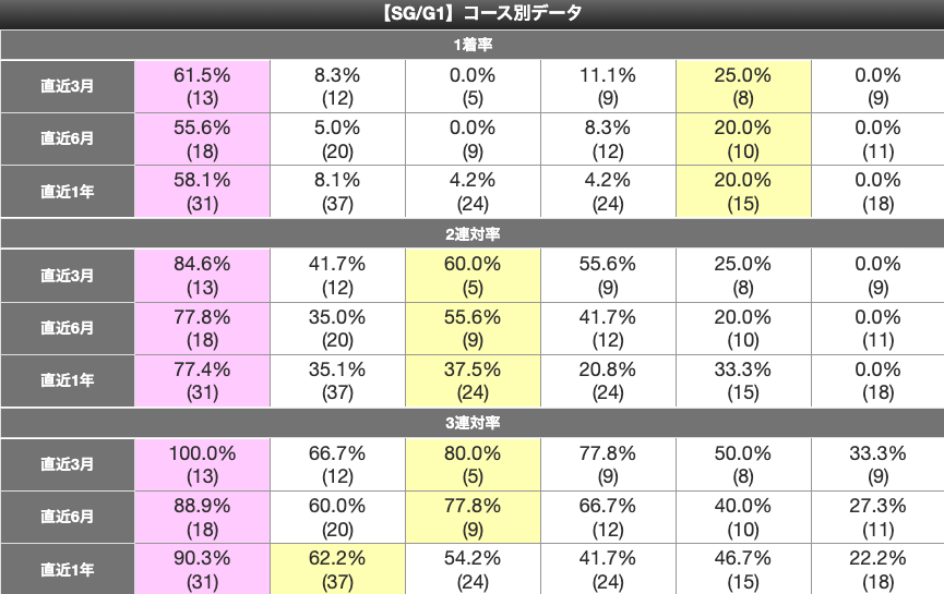 関のイン戦。関のデータはやや心もとないが、②宮地の逃がし率は73%と高い。