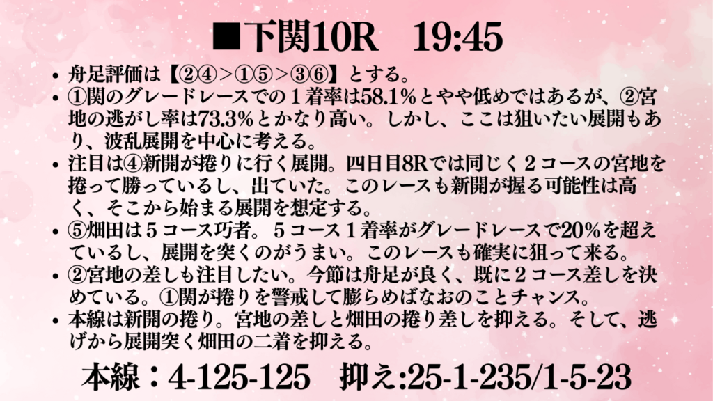 畑田も四日目に同じく5コースから捲り差しを決めていて、似たような展開になる可能性は十分考えられる。