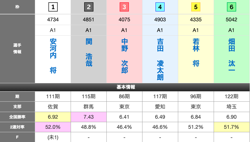 安河内のイン戦。グレードレースでの1着率は50%しかない。
