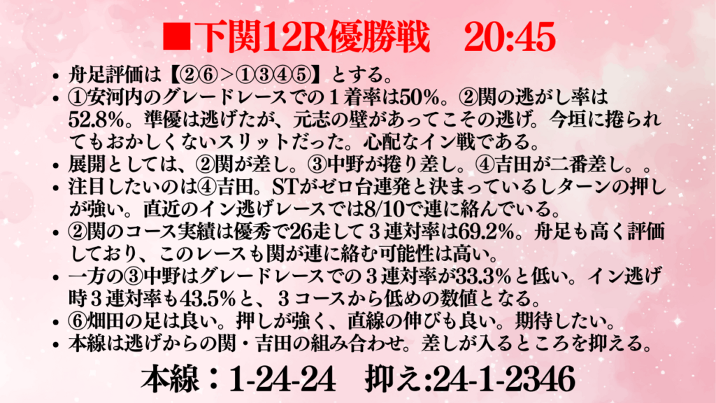最後、絞った舟券でこの優勝戦を獲って有終の美を飾ろう。
