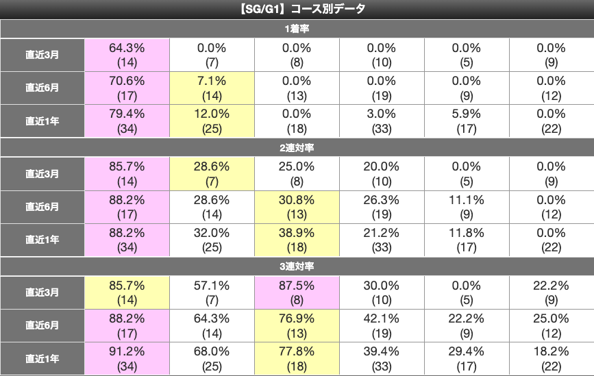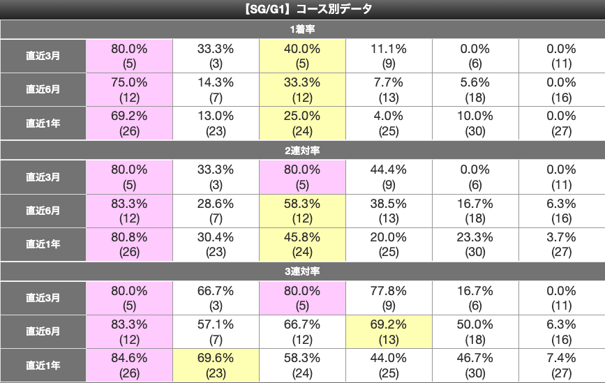 平本のグレードレースでの1着率は69.2%。当地住之江の直近3年で見ると僅か20%に留まる。