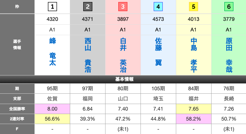 対戦成績を確認すると、転覆したレース以外ではこのコース・このメンバーで負けなしの峰。