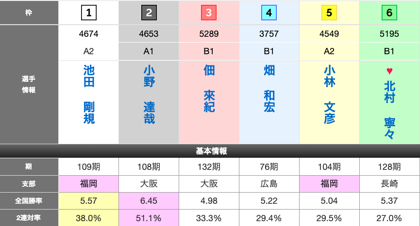 福岡は初日。今回のメンバーのモーターは総じて良い数値とは言えない数値が並ぶモーターだ。