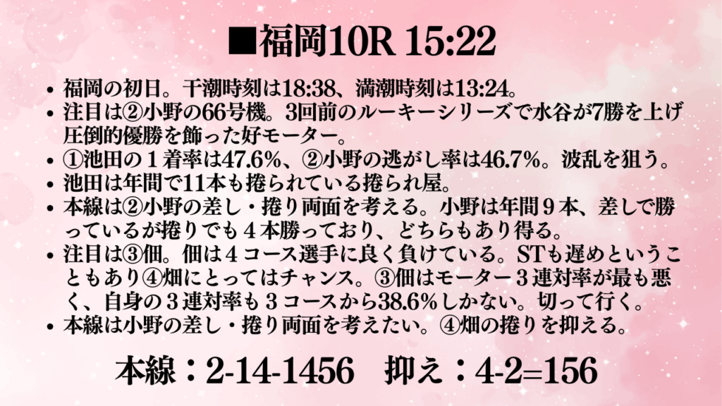 今回はおすすめ波乱レースから福岡をピックアップしました。