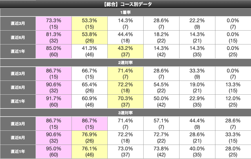 その分2連対率がかなり高めの70%オーバーという数値になっているわけであるが、このレースも2着内に入る可能性は高いと見ている。