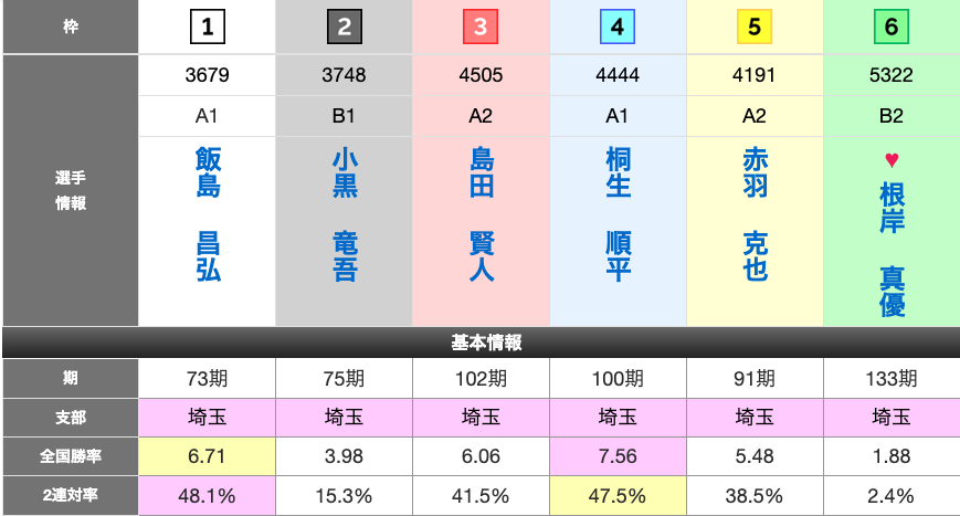 ①飯島の舟足は中堅だが、コース実績が非常に優秀だ。