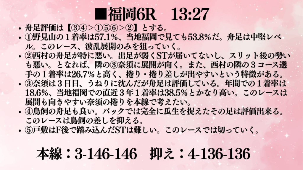 福岡6R,まとめ。