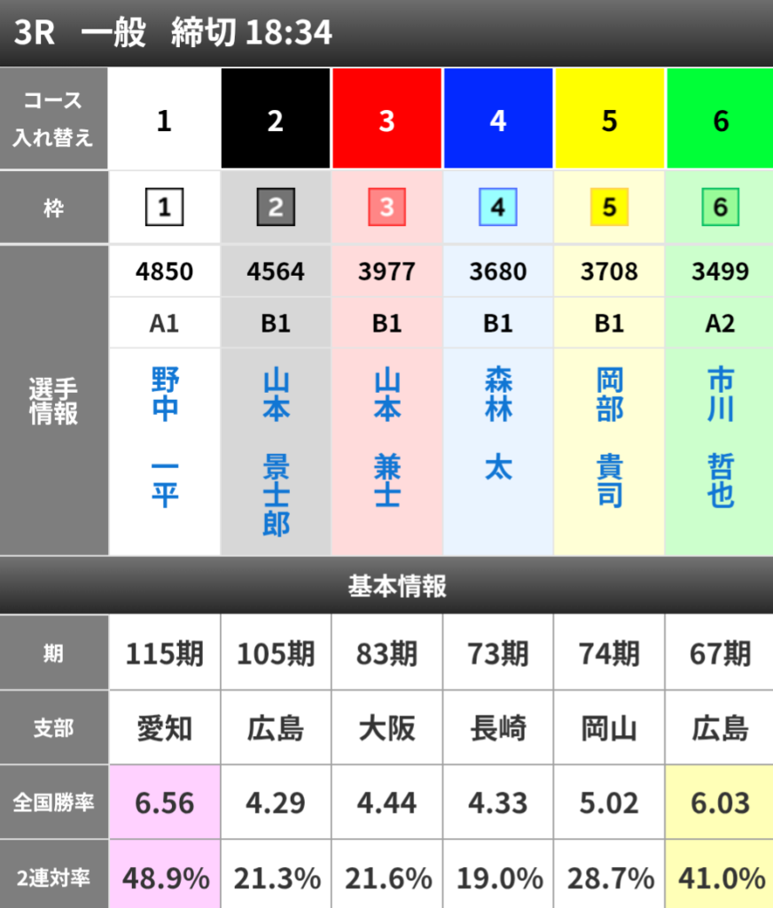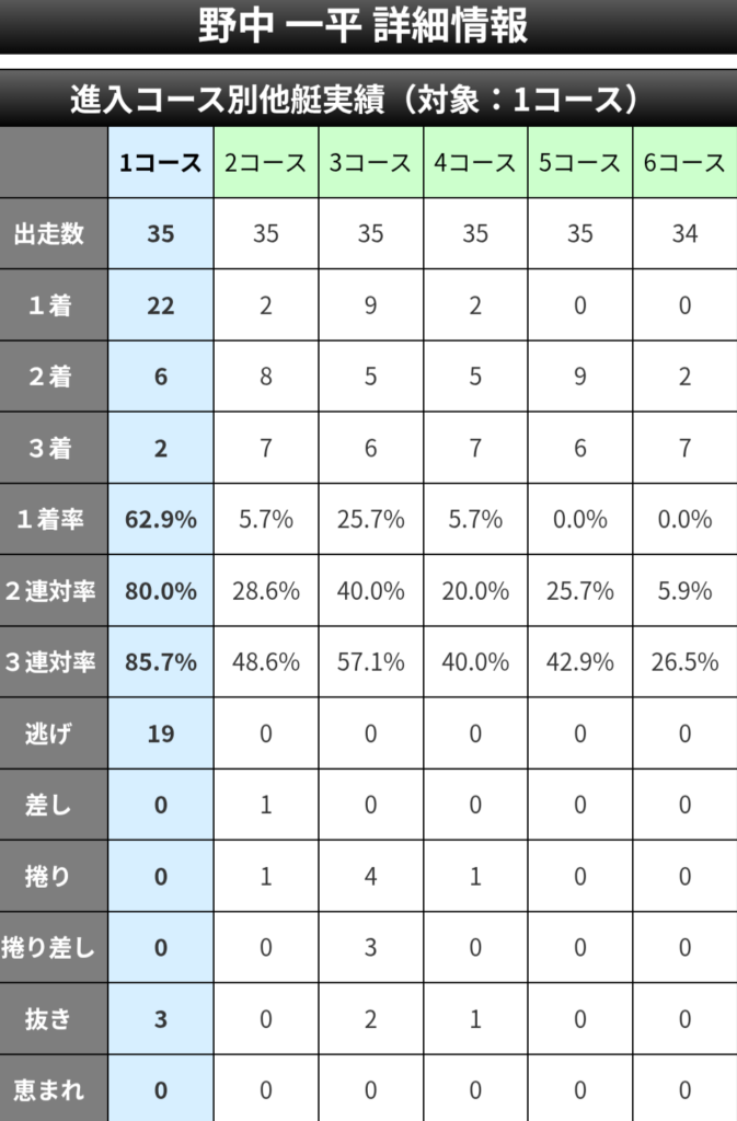 ③山本選手は3コース勝率7%と高い数値ではないが、