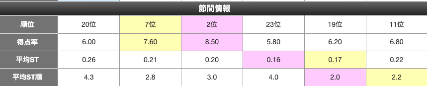 今節のST。