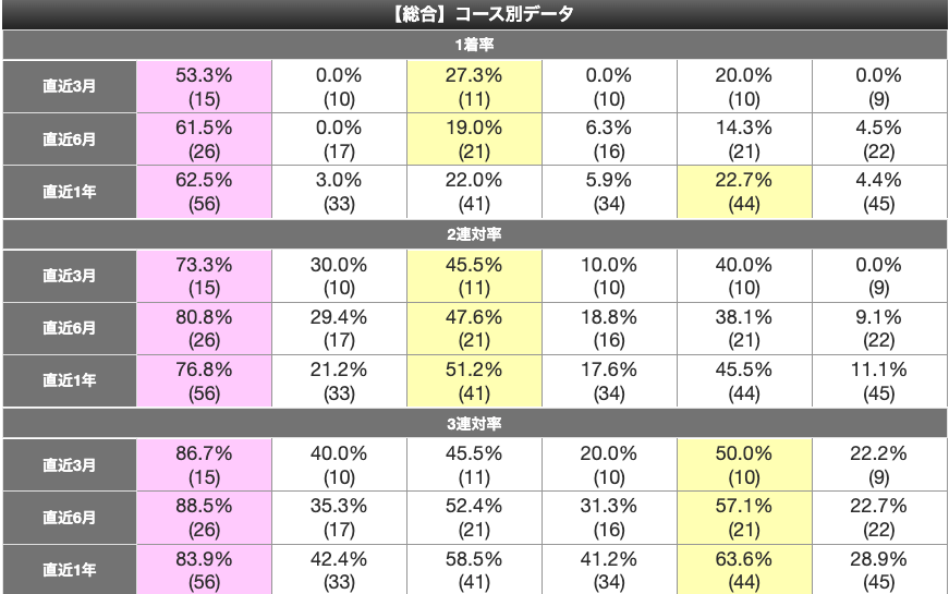 ③君島と⑤澤田の1着率が優秀だ。
