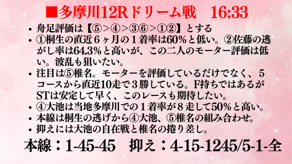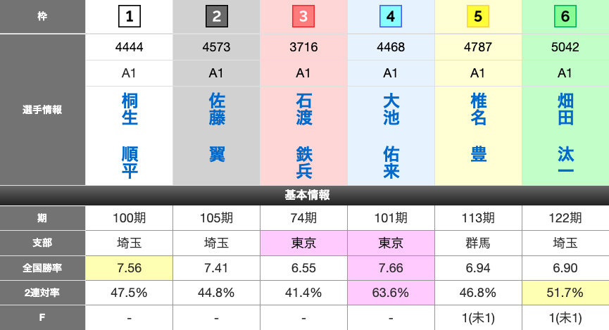 ①桐生と②佐藤の二人のモーターの気配悪い。
