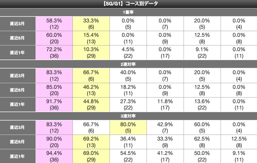 桐生の直近3ヶ月間のグレードレースでの1着率は58.3%。