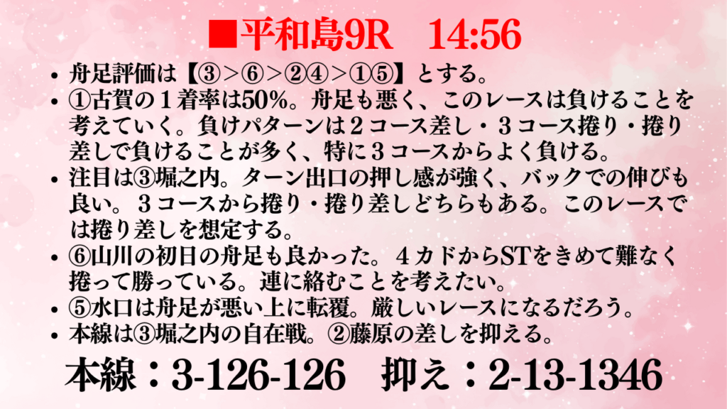 数値的にも舟足的にも、平和島という水面的にも不安しかないイン戦だ。