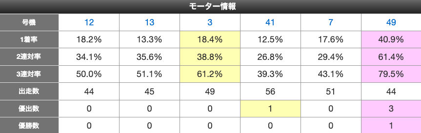 2節前に大上が爆出ししていたモーターで期待が持てる。
