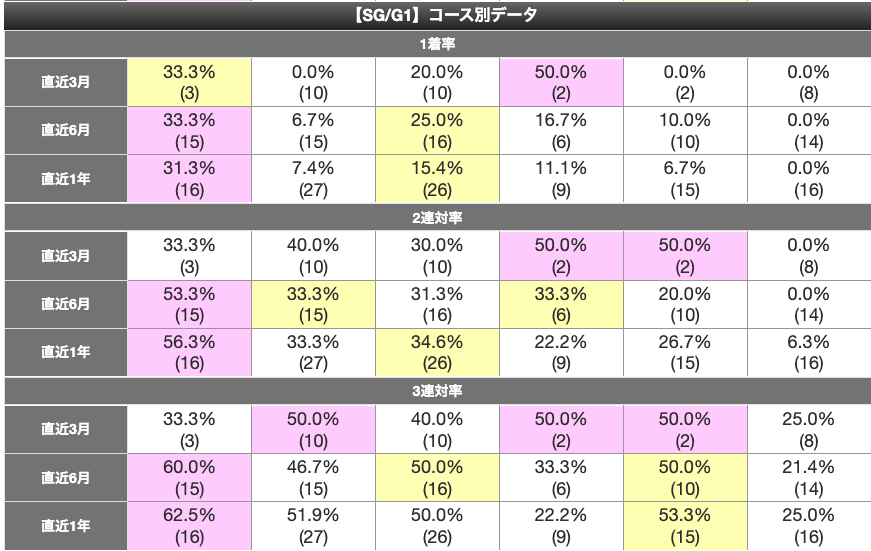 直近半年で25%という数値をマークしているし、直近では3コースから連勝中となっている。
