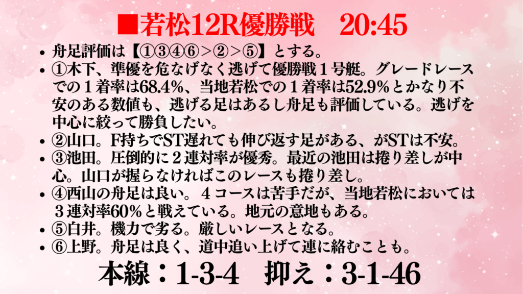 そしてどうしても抑えたい展開もあるので、そこは狙います。