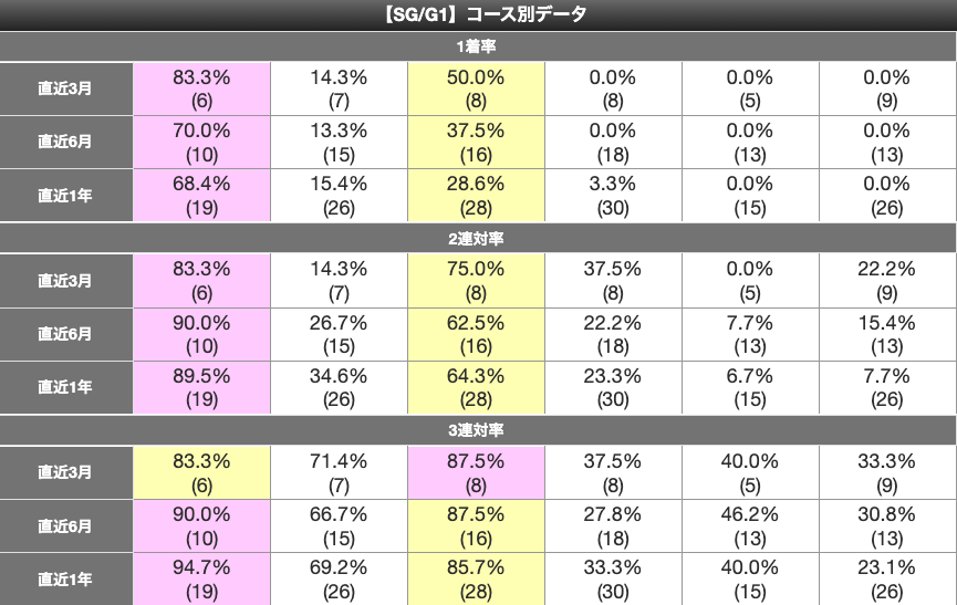 そして、2連対率・3連対率を見ても圧倒的に池田である。