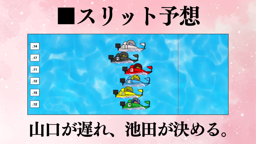 抑えに池田の捲り差しが突き抜けるところを想定する。