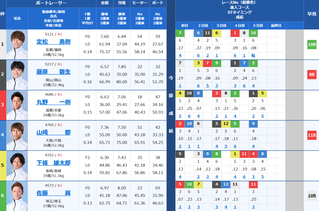 F2本持ちで売れない存在になっているが、今節の平均STも0.13(2.8)とこのメンバーの中でも一番決まっている。