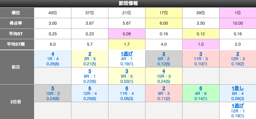 武井はここまで3走して2本がトップST、ゼロ台も2本と決まっている。