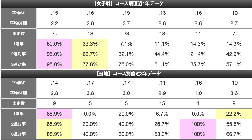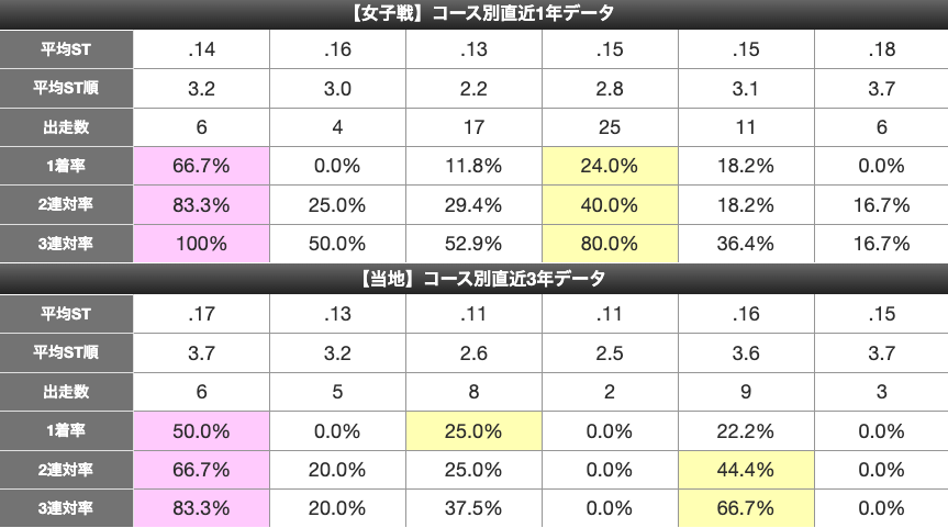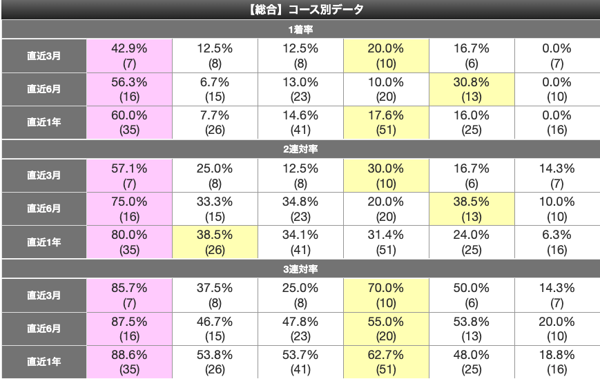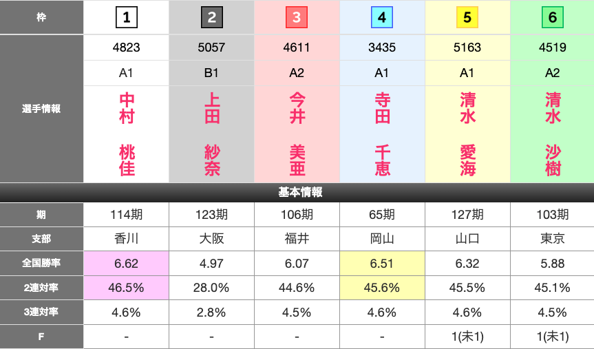ちなみに清水の5コース1着率は、直近6ヶ月で見ると全選手中17番目の数値となる。