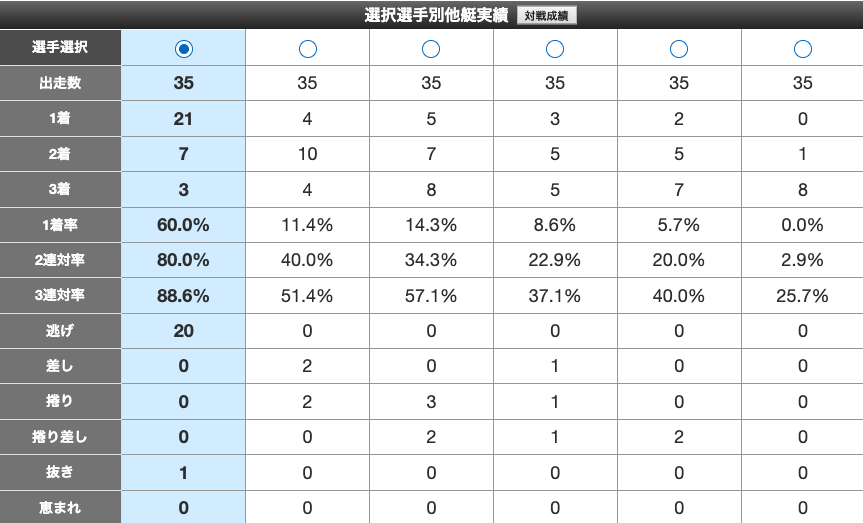 中村は万遍なく負けているが、特に3コース捲りで負けることが多い。
