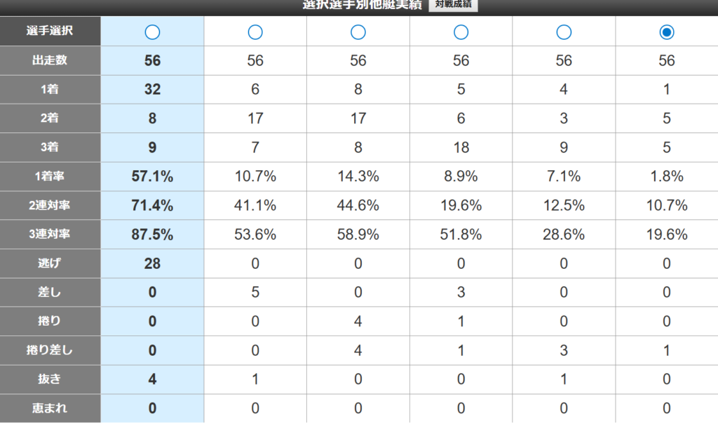 負け方としては、自在傾向で2コースから差され負け5本。