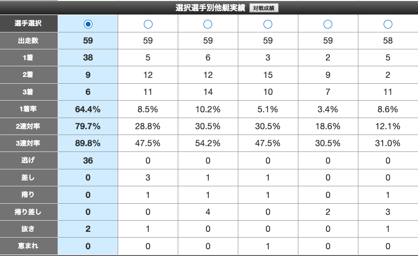 ②菊地の1着率は0%。このレースでは他の選手を優先に考えたい。