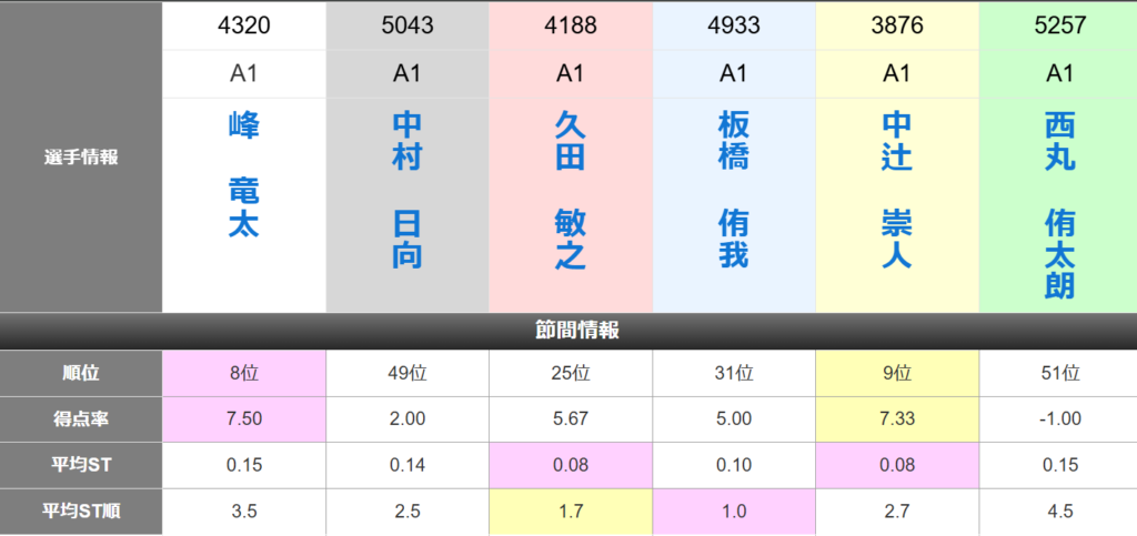 今節、このメンバーでスタートが決まっているのは③④⑤の3選手。