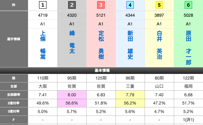 そして、③定松と④新田の比較となれば、それはやはり準優で勝った定松を優勢と考えたい。