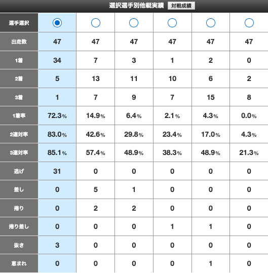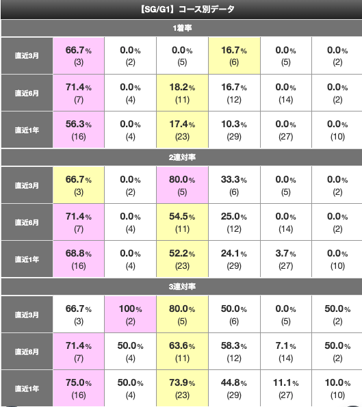 舟足は中堅レベル。F持ち、コース実績も微妙。そして宮田の逃がし率は低め。