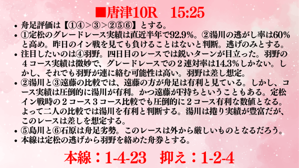 舟券の難しさを改めて垣間見たレースとなりました。