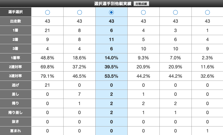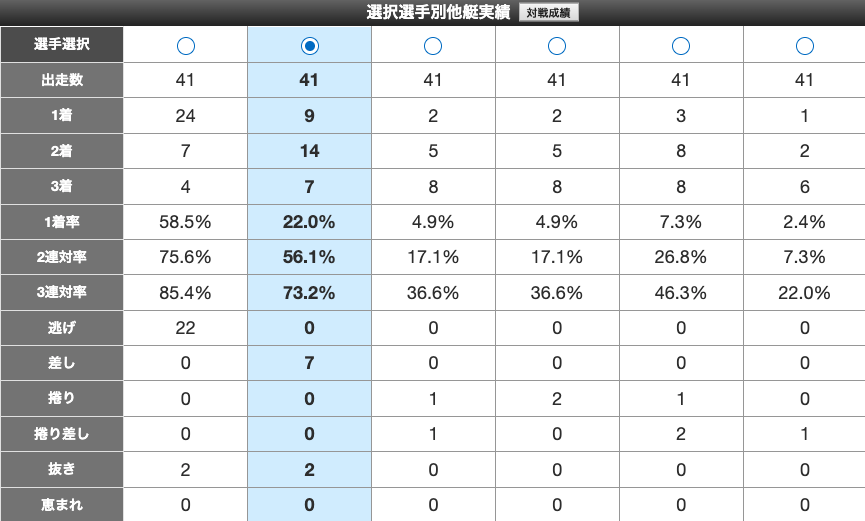 羽野の2連対率はかなり寂しいデータとなるが、なんとか出来る足がある